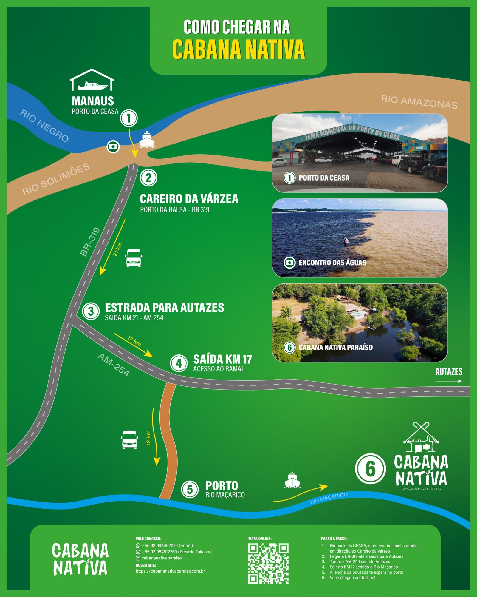 A apenas duas horas e meia de Manaus, com um passeio panorâmico pela estrada fluvial que atravessa o icônico Encontro das Águas, o Cabaná Nativa Paraíso é o refúgio perfeito na natureza — onde sua jornada pela Amazônia começa com admiração e aventura.